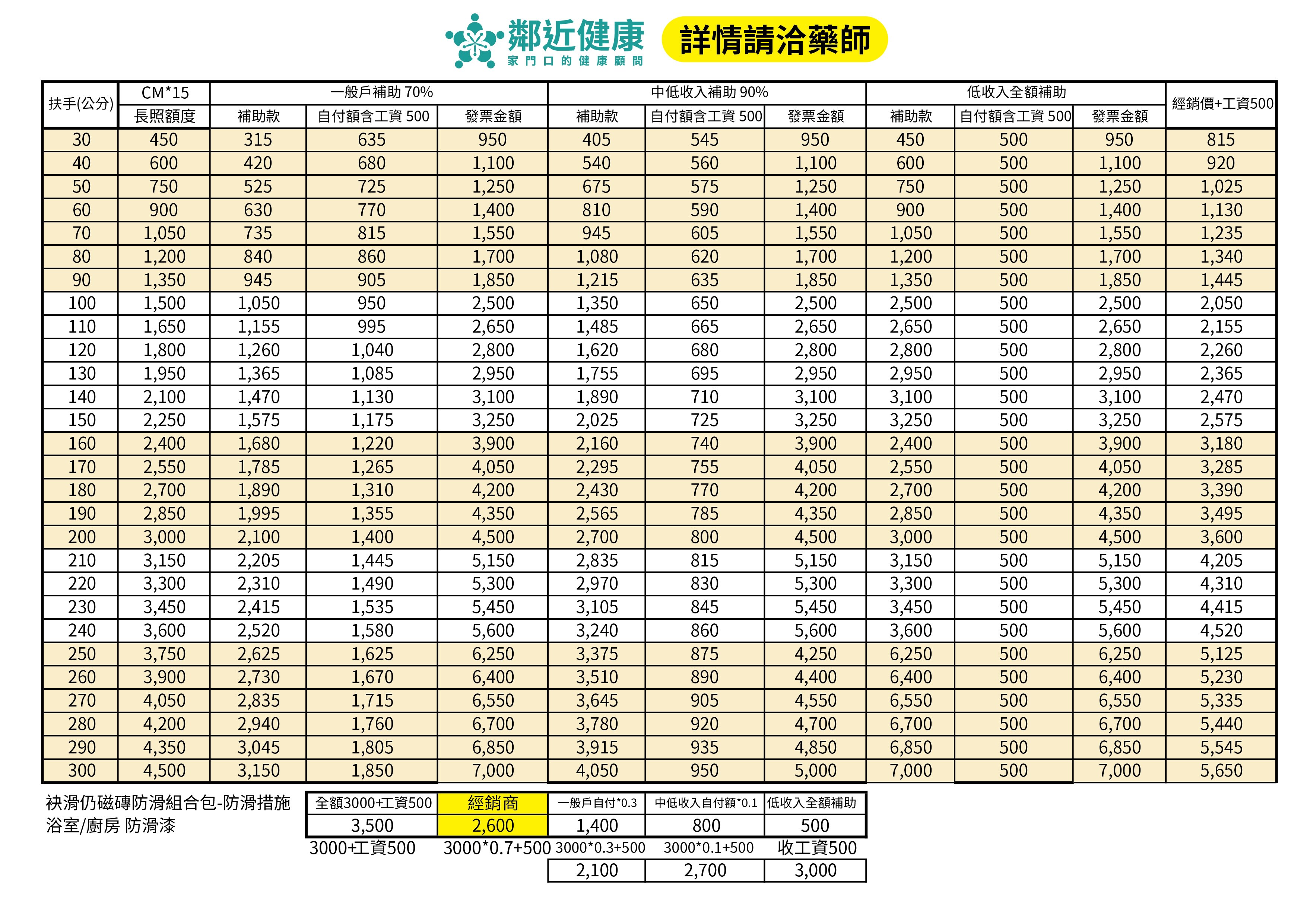 一般戶: 補助 70%,自付 30% (註:總額度內依項目上限計算,超過上限之部分需自行負擔)